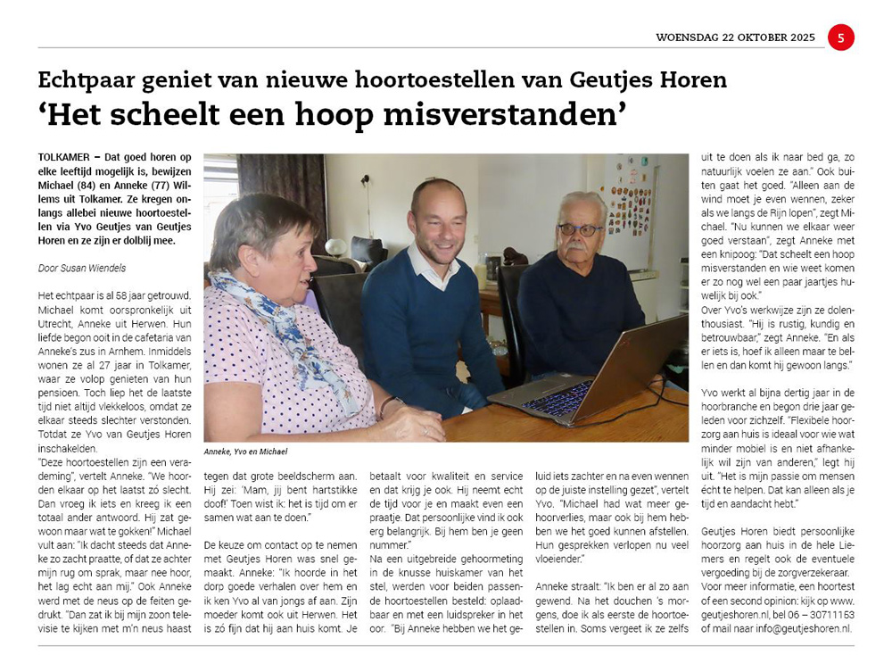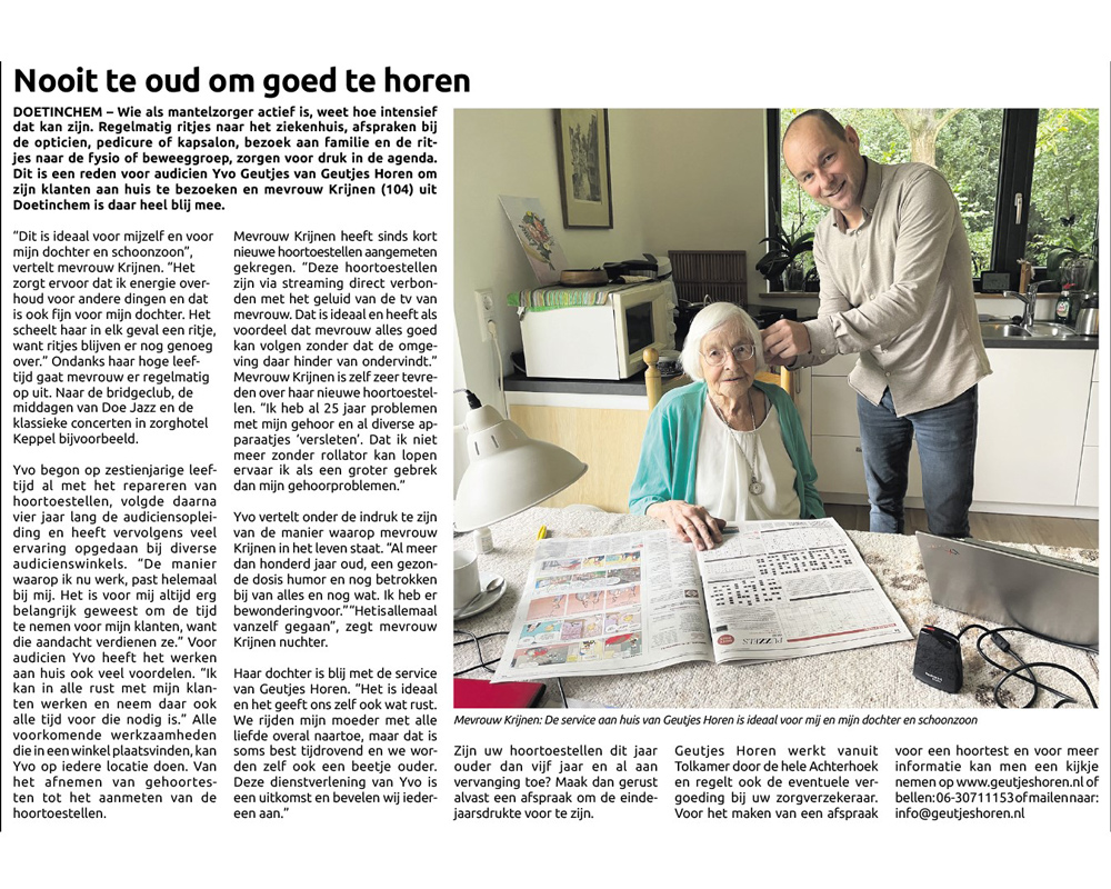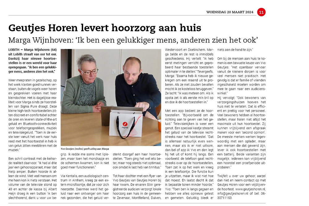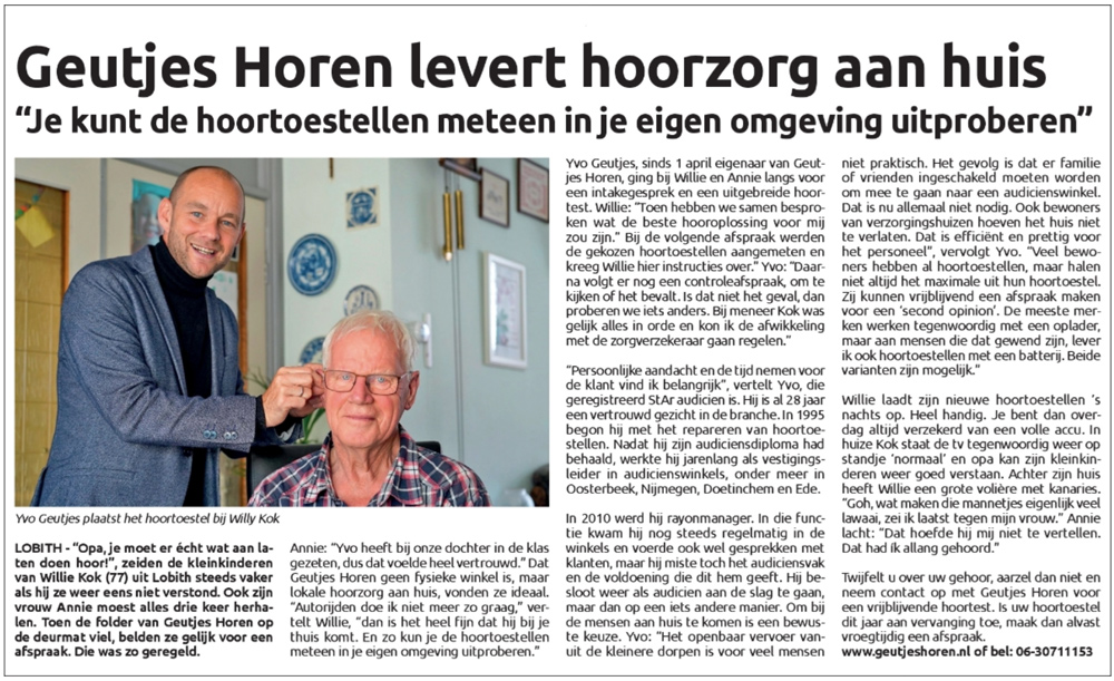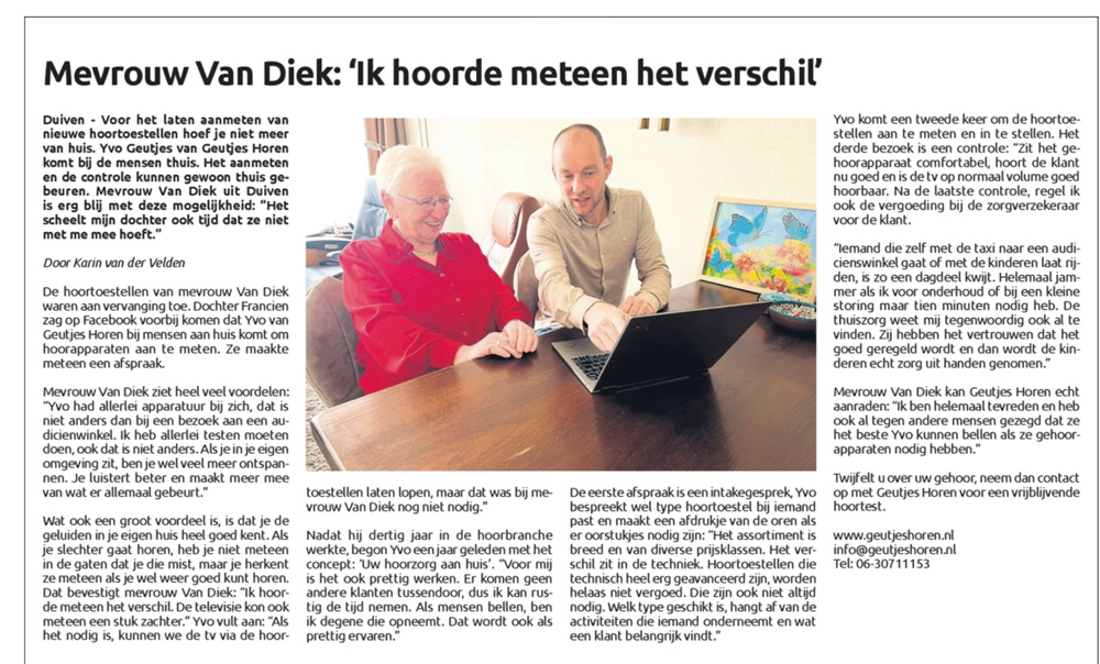 Geutjes Horen heeft afgelopen jaar diverse keren in de media gestaan. Hieronder ziet u een aantal artikelen die in de lokale media zijn geplaatst.